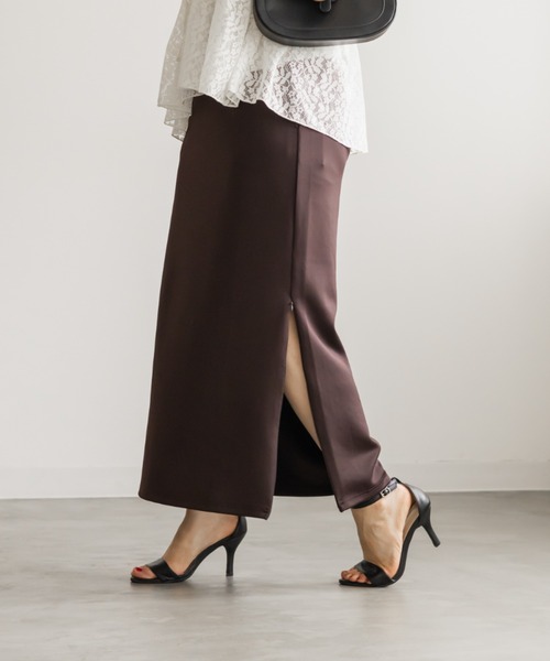 ◆商品ポイント◆ ・どんなアイテムとも合わせやすい、すっきりとしたシルエットが魅力。サイドスリットの深さを調節できるファスナー付きでさらにコーディネートを楽しめる。 ・上品見えしながら伸縮性のある素材感で着心地の良さを両立するナロースカート。安心感のあるウエストベルトやポケット付きで機能性も満足な1枚。 ◆model:164cm/普段トップス3L・ボトム4L着用 着用コメント◆ 3Lを着て丁度いいサイズ感で、窮屈感なくらくちんな着心地でした!いつものナロースカートよりは少しタイトなシルエットですが、ストレスのなく着ていられる生地感で、後ろもゴムだから窮屈感もありません◎スリットはファスナーで自分好みで開けられるのもポイントです!閉めても見えにくいコンシールファスナーなのが嬉しいです!シンプルなデザインだから色々なトップスと合わせやすく、季節問わず使えるので1枚は持っておきたいスカートです! ◆サイズ(LL/3L/4L)◆ 着丈 91/92/93 ウエスト 77-96/83-102/91-110 ヒップ 98/104/112 裾周り 108/114/122 スリット 40/40/40 ◆生地について◆ 裏地無し 透け感無し 伸縮性少し有り ◆洗濯表示◆ 液温は、40°Cを限度とし、洗濯機で非常に弱い洗濯処理ができる。 漂白処理はできない。 洗濯処理後のタンブル乾燥処理はできない。 日陰でのつり干し乾燥がよい。 底面温度160°Cを限度としてアイロン仕上げ処理ができる。 石油系溶剤(蒸留温度150°C~210°C、引火点38°C~70°C)又はデカメチルペンタシクロシロキサン(沸点210°C,引火点77°C)でのドライクリーニング処理ができる(弱い処理)。 ウエットクリーニング処理ができる(非常に弱い処理)。 ◇◇◇ CLETTEについて ◇◇◇ ぽっちゃり体型、大きいサイズの方が『この服でいいや』ではなく『この服が可愛い』『この服を着たい』と思ってもらえるようなアイテムをお届けしています。 CLETTEだけでしか購入できないオリジナル商品を是非一度手に取ってみてください◎
