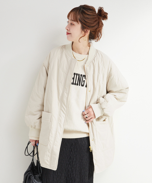 軽さと暖かさを兼ね備えたキルティング素材のブルゾン。 ※こちらは《品番:23011700801040、24011700601030、24011700601130》の追加商品です。 ・同一商品でも個体差が生じるため、採寸内容に若干の差が生じる場合がございます。 ※こちら昨年同型です。中綿も昨年同様機能素材を使用しており保温性に優れております。 また風合いも昨年のものよりも柔らかいものを使用しており、着心地が良いアイテムとなります。 高級感のあるマットなナイロン素材を使用し、ステッチのあるパーツとノンステッチのパーツを組み合わせて、単調にならないようにデザインしました。 どこかMA-1を彷彿させるミリタリーデザインもトレンドを抑えています。 襟ぐりと袖口にリブを施すことで、デザイン性と暖かさを両立させた一着です。また、裾はラウンドヘムなので体型を選ばず抜け感のある着こなしに仕上げてくれます。 キルティング素材の中綿入りブルゾンは軽い着用感なので、カットソー、シャツ、ニットと気温によってインナーを変えながらロングシーズンお使いいだけます。 ドライクリーニングにてお手入れ可能です。 ********************** 透け感:なし 裏地:あり 伸縮性:なし 光沢感:なし 生地の厚さ:普通 ********************** 【スタッフ着用コメント】 《スタッフ staff.K》 身長:162cm/普段サイズ:S-M/着用サイズ:フリー サイズ感:ほどよくゆとりのあるシルエット。腰回りをカバーするミドル丈。 素材感:マットな質感のキルティング生地。 着心地:軽い着心地で、季節の変わり目から取り入れやすいアウターです。 ※あくまで個人の感想です。 ********************** ※こちらの商品は、WEBと一部店舗限定商品です。 そのほかの店舗へは入荷致しませんのでお問い合わせの際にはご注意ください。 B.C STOCK Spick & Span / JOURNAL STANDARD / EDIFICE / IENA OUTLET STORE 三田店 B.C STOCK Spick & Span / JOURNAL STANDARD / EDIFICE / IENA OUTLET STORE 御殿場店 B.C STOCK Spick & Span / JOURNAL STANDARD / EDIFICE / IENA OUTLET STORE 木更津店 B.C STOCK 長島店 B.C STOCK 南町田店 ※取り扱いについては、商品についている品質表示でご確認ください。 ・素材の特性上、洗濯や着用中の摩擦により表面が毛羽立ち、毛玉(ピリング)が生じます。 ※照明の関係により、実際よりも色味が違って見える場合があります。またパソコン・スマートフォンなどの環境により、若干製品と画像のカラーが異なる場合もございます。 ※商品の色味は、商品アップ画像をご参照ください。 ブラック、ナチュラル着用スタッフ:163cm 着用サイズ:フリー カーキ着用スタッフ:157cm 着用サイズ:フリー 詳細着用モデル:162cm 着用サイズ:フリー 本体:ドライクリーニング