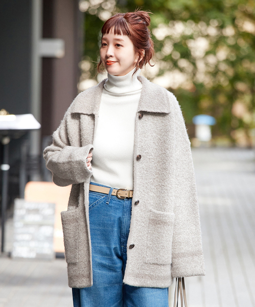 配色襟がアクセントになり上品見えするニットジャケット。ブークレー糸を2色引き揃えてパイル編みに仕上げた、ツイード風の表情豊かなニットジャケット。暖かくふんわりとした肌ざわりが魅力で、ヒップまでしっかり隠れるロング丈とゆるっとしたオーバーサイズシルエットで、こなれ感溢れるアイテムです。ボタンを留めてカーディガン風にも、さっと羽織ってニットコート風にも着用いただけます。手洗い可能でご自宅でのイージーケアができるのも嬉しいポイントです!**********************透け感:なし裏地:なし伸縮性:あり光沢感:なし生地の厚さ:やや厚手**********************【スタッフ着用コメント】《スタッフ staff.K》身長:162cm/普段サイズ:S-M/着用サイズ:フリーサイズ感:腰回りをカバーする長めの丈感、中に着込めるオーバーなサイズ感です。素材感:チクチク感はあまり感じず、ずっしりとしたニット素材。着心地:重さがあり、アウター代わりにコーデに取り入れられるニットジャケットです。※あくまで個人の感想です。**********************※取り扱いについては、商品についている品質表示でご確認ください。・色移りすることがありますので、浸け置き洗いや、濡れた状態での放置はお避け下さい。・毛羽が他に付着した際はテープやブラシで除去してください。 素材の特性上、着用中に他のものに毛羽や毛玉が付くことがあります。・白化や毛羽立ちなどが生じることがあります。ネットに入れて洗ってください。※こちらの商品は、B.C STOCKでの取り扱いになります。 直接店舗へお問い合わせの際はB.C STOCK店舗へお願い致します。※照明の関係により、実際よりも色味が違って見える場合があります。またパソコン・スマートフォンなどの環境により、若干製品と画像のカラーが異なる場合もございます。※商品の色味は、商品アップ画像をご参照ください。着用スタッフ:163cm 着用サイズ:フリー詳細着用モデル:162cm 着用サイズ:フリー本体:手洗い可能