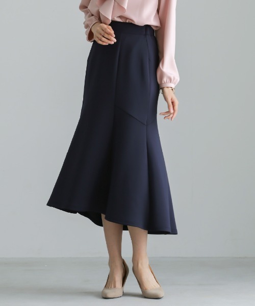 無敵のスカート【洗える・UV CUT・ストレッチ・軽量・接触冷感】ハイストレッチダンボールニット・マーメイドスカート■ Emilyan ■「 美ラインが叶う 大人の一枚 」女性らしさと動きやすさを両立したロング丈のマーメイドスカートです。立体感のある切り替えラインがシルエットに奥行きをもたらしすっきりと美しく魅せてくれます。前裾より後ろ裾を長く設計したことで歩くたびに揺れる裾がエレガントでフェミニンな印象をプラス。ウエストは後ろゴム仕様できちんと感がありながら快適な穿き心地に。オンにもオフにも寄り添う大人の女性のための一着です。〈〈 ダンボールニット シリーズ 〉〉リラックスできる快適な着心地。ほんのり光沢もあるため上品にみえる素材感。“ 嬉しい多機能素材 ”●ホームケア… おうち洗いできるイージーケア●UVカット … 紫外線遮蔽率99%以上●ストレッチ…全方位ストレッチ●軽量…軽やかな着心地でストレスフリー●クールタッチ … ひんやり感じる接触冷感●マルチシーズン…晩夏から春まで着られる【 color 】●エクリュ[ 淡くやわらかなエクリュベージュ ]●ネイビー[ ほんのり青みがかった爽やかなネイビー ]●ブラック[ 深みのあるブラック ]===================厚さ:★★☆☆☆ 透け感:なし裏地:なし伸縮性:ありケア:洗濯機可シーズン:晩夏・秋・冬・春===================【 fabric 】ポリエステル87% ポリウレタン13%【 model 】 NOZOMI 167cm S着用RURU 167cm S着用MADE IN CHINA(企画・検品は日本)UVカット 接触冷感 軽量 保温性 手洗い可 ウォッシャブル ストレッチ ロングスカート レディース 通勤対応 オフィス きれいめ