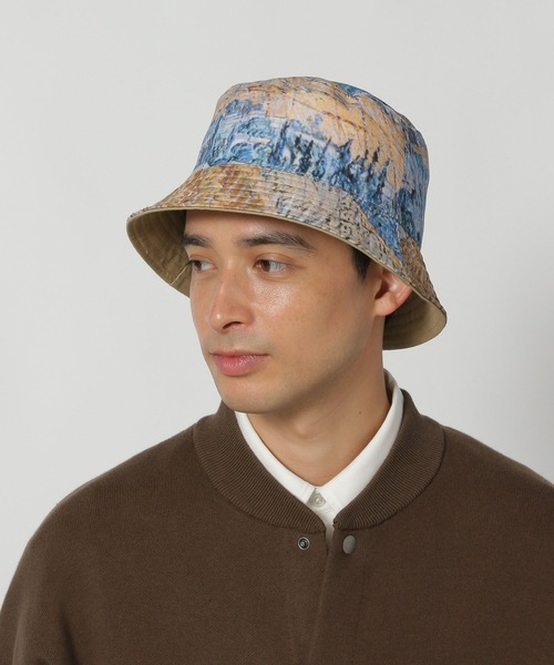 ゴッホの「星月夜」を全面にプリントしたハット。リバーシブルでお使いいただけ、裏面はシンプルな黒とベージュにゴッホの名前を刺繍しました。スタイリングによって、2WAYでお楽しみいただけるアイテムです。