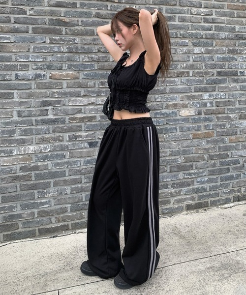 ▼Item Pointトラックパンツ サイドライン ワイドフィット ストレートシルエット フルレングス(丈長め) ウエストゴム/紐仕様 ▼Item Infomation 伸縮性:あり 季節:春 夏 秋 透け感:なし 裏地:なし ※±1~3cmの誤差が出る場合がございます。 ▼Washing Tip 単独手洗い・中性洗剤使用 ぬるま湯洗い又はドライ可 高温洗い・高温アイロン不可 色落ち・変形の恐れあり 漂白剤・乾燥機不可 anyonemore | エニワンモア #モノトーン#ガーリー#Y2K#バレエコア anyonemoreは、ベーシックでミニマルなアイテ ムに最新のトレンドを反映させたユニークなデザインのア イテムがお手頃価格で揃う、韓国発のファッションブラン ド。ブランド名のとおり他の誰よりも自分らしく、一人一 人の魅力をさらに一段階アップさせてくれるアイテムがZ 世代を中心に人気を集めている。
