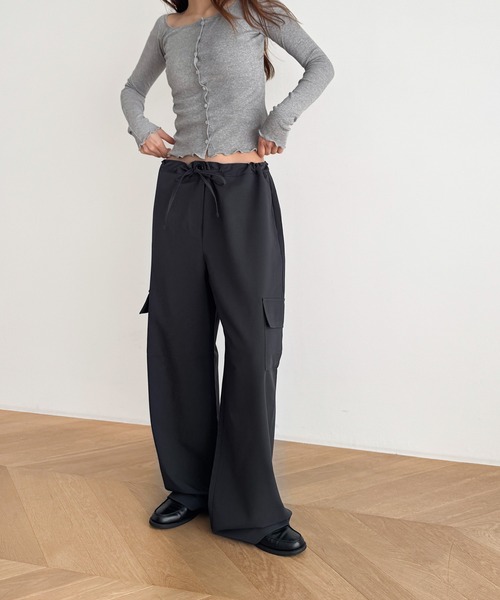 デザイン カーゴパンツ特有の大きめのポケットが印象的な1枚。 ウエストはドローコード付きなのでサイズ調節できるのも魅力です。 素材 レーヨン混の滑らかな肌触りで、カジュアルになりすぎず上品な印象に。 コーディネート カジュアルからメンズライクまで様々なコーデに◎ 合わせるアイテム次第で様々なスタイルをお楽しみいただけます。 diggity(ディギティ) diggityとはスラングで"イカシタ"という意味です。 ------------------------------------- 生地の厚さ:厚い〇〇●〇〇薄い 伸縮性:なし 透け感:なし 裏地:なし 光沢:なし ・4ポケット(後ろフェイクポケット) ・ウエストドローコード付き ------------------------------------- 取扱い ・この素材は水や湿気に弱いため、縮んだり色落ちする場合があります。また紫外線で変色する場合もあります。 ・お洗濯は必ずドライクリーニングでお願いします。裏返しにしてクリーニングネットを使用してください。 ・スチームアイロンの使用は避け、アイロンは当て布をし、裏からアイロンをかけてください。 ・摩擦や引っ掛けにご留意ください。 ※取り扱い及びお手入れ方法については、商品についている取扱表示、洗濯表示にてご確認下さい。 ※照明の関係により、実際よりも色味が違って見える場合があります。またパソコン・スマートフォンなどの環境により、若干製品と画像のカラーが異なる場合もございます。 ※商品の色味は、商品アップ画像をご参照ください。