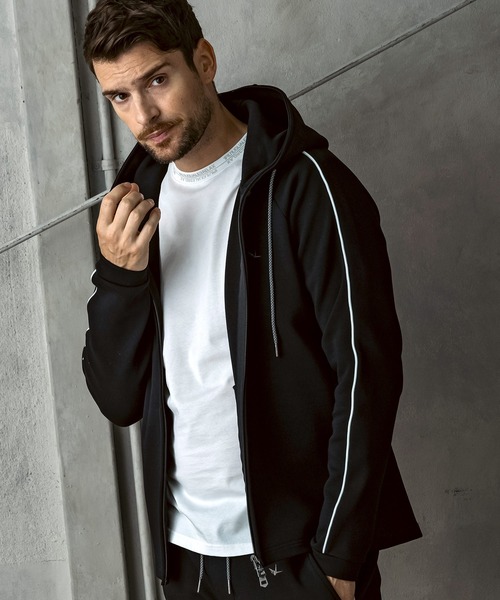 1PIU1UGUALE3 RELAX(ウノピゥウノウグァーレトレ リラックス)パイピング スムースジップパーカー (ストレッチ性/伸縮性)