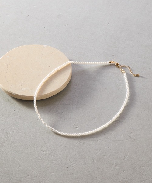 【シンプルなのに印象的、華奢見えベビーパールネックレス】 約3.0-3.5mmのミニサイズの淡水ベビーパールが、大人にぴったりな華奢さと上品さを醸し出すネックレスです。 小粒ながらホワイトピンクのテリを感じられ、肌馴染みの良いパールになっております ネックレスの長さは約36.2cmですが、アジャスターは約5cm内で調整ができるため、お好みの長さに合わせて身に着けられます。 また、ほかのジュエリーとの重ね付けにもおすすめ◎。 カジュアルなコーデにも、ドレッシーなコーデにも相性抜群なアイテムです。4 【商品ポイント】 ・上品なベビーパール ・他のジュエリーとの重ね付けも◎ ・アジャスターで長さ調整可能 ・カジュアルにも、ドレッシーにも◎ ---------------------------------------------------- ■素材 本体:プラスチック, 鉄, 真鍮 ---------------------------------------------------- ※着用、お取り扱いの際は、商品についている品質表示とアテンションタグを必ずご確認下さい。 ※商品タグに記載されている商品名がWEBでの表記名と異なる場合があります。 ※実際の商品と仕様、加工、サイズが若干異なる場合がございます。 ※照明の関係により、実際よりもやや明るく見える場合がございます。 またパソコンなどの環境により、若干製品と画像のカラーが異なる場合もございます。予めご了承くださいませ。 【お気に入り登録】してお得な情報をCHECK!! ・「商品のお気に入り登録」で再入荷通知や、ラストの通知、セール通知も受け取ることができます。 ・「ブランドのお気に入り登録」で新商品や再入荷など、お得な情報を受け取ることができます。