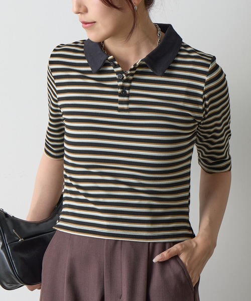 【程よいフィット感が決め手、リブボーダーポロシャツ】 柔らかなリブ編み素材が肌に優しくフィットし、女性らしいしなやかなシルエットを作るリブボーダーポロシャツです。 マルチボーダー柄は、爽やかでありながら程よくアクセントを効かせ、彩りをプラスします。 襟元はすっきりとした台襟付きで、きちんと感を演出しつつもカジュアルな雰囲気に。 1枚で女性らしい抜け感と上品さを両立できる、デイリー使いに最適な一着です。 【商品ポイント】 ・伸縮性のある生地感 ・すっきりとした襟元 ・1枚で映えるマルチボーダー柄 【リブボーダーシリーズ】 CWA1052109A0006 リブボーダーポロワンピース ---------------------------------------------------- ■商品特徴 洗 濯 方 法 :洗濯機洗い可(弱) 裏 地 :なし 透 け 感 :なし 伸 縮 性 :あり 光 沢 感 :なし 生地の厚さ:普通 ---------------------------------------------------- ■素材 本体: ポリエステル93%, ポリウレタン7% 衿部分: 綿60%, ポリエステル40% ---------------------------------------------------- ※着用、お取り扱いの際は、商品についている品質表示とアテンションタグを必ずご確認下さい。 ※商品タグに記載されている商品名がWEBでの表記名と異なる場合があります。 ※実際の商品と仕様、加工、サイズが若干異なる場合がございます。 ※照明の関係により、実際よりもやや明るく見える場合がございます。 またパソコンなどの環境により、若干製品と画像のカラーが異なる場合もございます。予めご了承くださいませ。 【お気に入り登録】してお得な情報をCHECK!! ・「商品のお気に入り登録」で再入荷通知や、ラストの通知、セール通知も受け取ることができます。 ・「ブランドのお気に入り登録」で新商品や再入荷など、お得な情報を受け取ることができます。