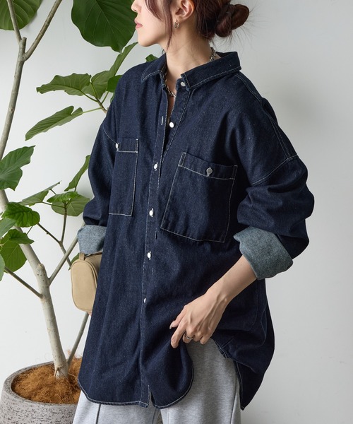 【毎日着たい、ほどよい厚みの8ozデニムシャツ】8オンスのライトオンスデニム素材を使用した、程よい厚みのデニムシャツです。デニム特有の丈夫さはそのままに、軽く柔らかな着心地でストレスなく着用できます。ゆったりとしたシルエットで、お尻が隠れる丈感なのでスタイルカバーも◎。ボタンを開けて羽織りとしても、閉じてトップスとしても着れる着回し力抜群のアイテムです。秋は軽めのアウターとしても大活躍します。【商品ポイント】・軽くやわらかな着心地の8ozデニム・トップスとしても、羽織りとしても◎・ゆったりとしたシルエットで体系カバーも・着回し力抜群のアイテム・軽めのアウターとしてもオススメ----------------------------------------------------■商品特徴洗 濯 方 法 :洗濯機洗い可(弱)裏 地 :なし透 け 感 :なし伸 縮 性 :なし光 沢 感 :なし生地の厚さ:普通----------------------------------------------------■素材綿100%----------------------------------------------------※着用、お取り扱いの際は、商品についている品質表示とアテンションタグを必ずご確認下さい。※商品タグに記載されている商品名がWEBでの表記名と異なる場合があります。※実際の商品と仕様、加工、サイズが若干異なる場合がございます。※照明の関係により、実際よりもやや明るく見える場合がございます。またパソコンなどの環境により、若干製品と画像のカラーが異なる場合もございます。予めご了承くださいませ。【お気に入り登録】してお得な情報をCHECK!!・「商品のお気に入り登録」で再入荷通知や、ラストの通知、セール通知も受け取ることができます。・「ブランドのお気に入り登録」で新商品や再入荷など、お得な情報を受け取ることができます。
