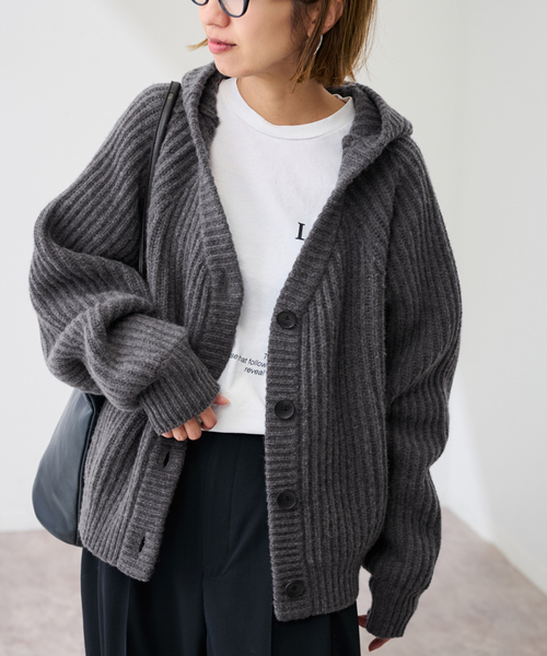 ウール100%の紡毛糸を使用した両畦編みのフードカーディガン。「ありそうでなかった」フード付きニットカーディガンで、サイドには便利なポケットを配置。フードはワークブルゾンのように中心部分を両サイドで接ぎ合わせたデザインで、被っても可愛い仕上がりです。梳毛パンツと合わせた大人っぽい着こなしががおすすめ。厚みのある素材感で、暑さの残る季節には羽織りとして、肌寒い時期には1枚で着ても様になります。**********************透け感:なし裏地:なし伸縮性:あり光沢感:なし生地の厚さ:厚手**********************※取り扱いについては、商品についている品質表示でご確認ください。※こちらの商品は、FRAMeWORK での取り扱いになります。直接店舗へお問い合わせの際は FRAMeWORK 店舗へお願い致します。※照明の関係により、実際よりも色味が違って見える場合があります。またパソコン・スマートフォンなどの環境により、若干製品と画像のカラーが異なる場合もございます。予めご了承の上ご注文ください。※商品の色味は、商品アップ画像をご参照ください。グレー着用スタッフ身長:165cm 着用サイズ: フリーホワイト着用スタッフ身長:165cm 着用サイズ: フリー詳細着用スタッフ身長:163cm 着用サイズ: フリー本体:ドライクリーニング