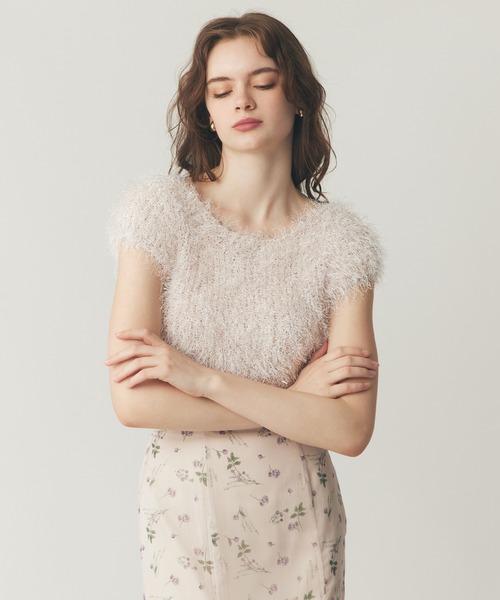 【Design & Fabric】ふわふわのシャギーとさり気なくきらめくラメが目を惹くショートニット。ショート丈のコンパクトシルエットが、様々なボトムと相性◎ショートスリーブデザインが気になる二の腕もカバー。デイリーにはもちろん、特別なシーンにもマッチする一枚です。透け感:なし裏地:なし伸縮性:あり光沢感:あり《ピンク》Model:H177cm B78cm W58cm H88cm《アイボリー/ベビーピンク》Model:H176cm B82cm W59cm H88cm