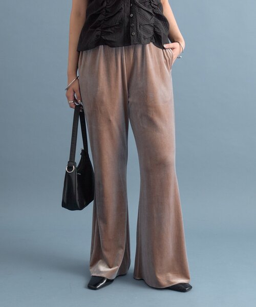 美シルエットなベロアフレアパンツが登場!●デザイン・しっとりとした質感で光沢感が魅力のフレアパンツが登場しました♩秋冬に1枚はもっていたいアイテムです◎・裾に向かって緩やかに広がるフレアシルエットは脚長効果も抜群で、ウエスト周りはゴム仕様でストレスフリーな履き心地なのもポイント。・2サイズ展開でピッタリなサイズをお選びいただけます。・ベーシックで使いやすいカラーと小花柄の3色展開で大人可愛いアイテムです♡●素材滑らかで肌触りが良い生地。やや伸縮性があるので履き心地も抜群です◎-----------------------------------------------------洗濯:40度限度 手洗い/石油系ドライクリーニング可アイロン:低温120℃まで スチームなし(あて布使用)タンブル乾燥:不可裏地:なし伸縮性:ややあり光沢感:ややあり生地の厚さ:普通------------------------------------------------------●スタイリング・デザイン性のあるブラウスと合わせて可愛さをプラスしたコーディネートに♡・チュニックを合わせてレイヤードさせたコーディネートでおすすめ◎こなれた印象になります!・スウェットを合わせてカジュアルダウンさせたコーディネートも。大人カジュアルなコーデが完成します♩●おすすめスタイリングアイテム・パフビスチェ ブラウス・バックシャンティアードチュニック●スタッフ着用コメント・身長153㎝ 骨格ウェーブ サイズ1程よいフレアシルエットでスタイルアップして見えました◎花柄も甘すぎず大人っぽく着ることができました!・身長162㎝ 骨格ナチュラル サイズ2チュニックやブラウスなど様々なアイテムと合わせやすいアイテムでした♩着やすくてお洒落に見えます!------------------------------------------------------商品のお気に入り登録➡ お気に入りアイテムの値下げ・再入荷・在庫1点などの通知を受け取ることができます。ブランドのお気に入り登録➡ 新商品や再入荷、セール、クーポン配布などお得な情報を受け取ることができます。※サイト上のカラー名と、お届け商品に記載されているカラー名が異なる場合がございます。※商品の色味は、撮影場所や光のあたり具合などにより色味が違って見える場合が御座います 。 また、お客様のお使いのPCのモニター環境などにより色味が違って見える場合が御座います。予めご了承の上ご注文下さい。※ご注文いただいた予約商品のお届け時期の確認は、注文履歴ページより行えます。------------------------------------------------------