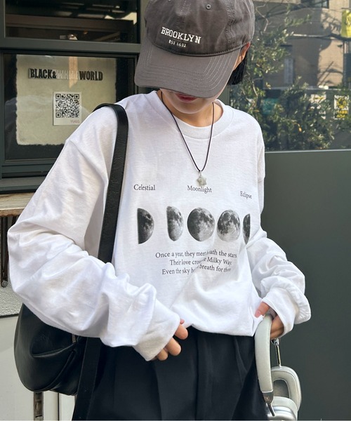 【お気に入りのプリントが見つかる秋冬注目の長袖ロンTが新登場★】 ■デザイン 柄によって印象の変わるロンT。 着心地のよい柔らかい生地で、ゆったりとトレンド感のあるシルエットに! ■スタイリング デニムやスラックスと合わせたカジュアルコーデはもちろん、 シャツやジャケットのインナーとしても着用できます。 きれいめスタイリングの外しとして着こなすのもおすすめです! ユニセックスアイテムなので、お揃いやプレゼントにも◎ ■素材 綿100%で吸湿性により汗をすばやく吸収し、発散してくれます。 汗ばむ季節はサラサラとした着心地を保つ一方で、保温性にも優れています。 サイズ展開 M・L カラー展開 ホワイト・ブラック ⇒ ムーンプリントレタリング ホワイト系その他・ブラック系その他 ⇒ ビッグムーンプリントロゴ ホワイト系その他2・ブラック系その他2・グレー系その他 ⇒ レタリングウェーブロゴ ホワイト系その他3・ブラック系その他3・グレー系その他2 ⇒ 4段ビッグロゴ ------------------------------------------------- 透け感:なし(ホワイトのみ少しあり) 裏地:なし 伸縮性:なし 生地の厚さ:薄め ------------------------------------------------- ■ポイント ・長袖 ・ロンT ・カジュアル ・きれいめ ・白 ・黒 ・シンプルデザイン ・韓国 ・ストリート ・ユニセックス ・男女兼用 ・カフェ ・お揃い ・デート ・秋冬 ・春 ・トレンド ・スタッフA:身長155cm / 体重45kg / 普段M着用 着用サイズ:M 着丈:ゆったりしたサイズ感でした。 肩幅:肩の落ちた、ゆるいシルエットで着られました。 身幅:少しゆとりがある感じでした。動きやすいです。 コメント:タックインしてももたつかず着用することが出来ました! 秋冬にぴったりなロンTです★ - 推奨サイズ - サイズM : 〜174cm(レディースフリーサイズ) ▼商品について▼ ※画像の商品はサンプルとなります。実際の商品と色味、仕様、加工、サイズ、素材等が若干異なる場合がございます。 ※商品の色味は、撮影場所や光のあたり具合、お使いの端末により色味が違って見える場合がございます 。予めご了承の上ご注文下さい。 ▼お取り扱いについて▼ ※着用またはお取り扱いの際は、アテンションタグや洗濯ネームを必ずご確認ください。 《 お知らせ 》 ●商品のお気に入り登録 お気に入りアイテムの値下げ・再入荷・在庫1点などの通知を受け取ることができます。 ●ブランドのお気に入り登録 新商品や再入荷、セール、クーポン配布などお得な情報を受け取ることができます。 是非、お気に入り登録してみてください ※ご注文いただいた予約商品のお届け時期の確認は、注文履歴ページより行えます。