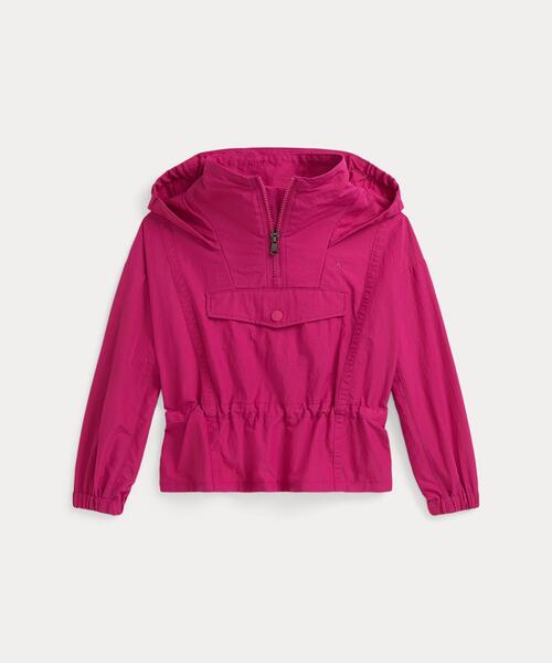 ペプラムの裾をあしらった、季節の変わり目にぴったりのキュートなフード付きリップストップ ジャケット。 ・左胸にシグネチャーのポニー刺繍。 ・フード / モックネック / クォータージップの前立て / 特別に開発した"Polo"のロゴ入りジッパー。 ・ドロップショルダーの長袖、伸縮性のあるカフス。 ・フロント中央にスナップ付きポケット / 伸縮性のあるペプラムの裾。 ・裏地なし。 ※商品の色味は、光のあたり具合など諸条件により色感が多少異なって見える場合がございますので予めご了承下さい。 Toddler(Age 2-7 / 90-130cm)