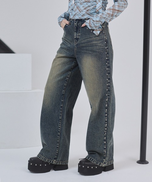 ■ポイントスタッズを打ってエッジを効かせた今季らしいデニムパンツ!■ディティールオーバーダイ加工によってヴィンテージ感のある色味がポイント。程よい太さ、すっきりとしたウエストと腰回りでスタイルアップ効果も期待できます。パンツ脇とポケットにスタッズを打ちこみクールなアイテムに仕上げました。■スタイリングカジュアルなスタイリングはもちろん、あえて甘さのあるアイテムとMIXしたスタイリングがおすすめです。▼商品のお気に入り登録完売カラーの再入荷通知や、ラスト1点の通知、セールの通知など商品の情報をいち早く受け取ることが出来ます。▼ブランドのお気に入り登録新商品や再入荷等、いち早くブランドのお得な情報を受け取ることが出来ます。