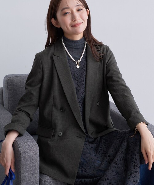 【デザインポイント】ジャージのようなストレッチ性とふくらみに凹凸のある表面感が特徴の着心地ソフトなダブルジャケットです。着回しやすいバランスときちんと感もあるデザインで仕上げました。ストレッチ裏地を使用した総裏仕様で、気温が下がるシーズン長く着用いただけます。【スタイリングポイント】同素材パンツ、ジレとセットアップスタイルの組み合わせが楽しめます。単品としても夏の装いにプラスワンするのもおすすめです。フリンジジャカード素材のトップスや表情感アイテムとの合わせがトレンド感アップ。シンプルできちんと見えもするサイジングのため、お仕事シーンにもおすすめです。【セットアップアイテム】パンツ:127-64906ジレ:127-44905【素材ポイント】強撚した糸を使用したドライ感のある素材です。表面は糸の特性で凹凸感を表現し、また染着差による軽いメランジ調を表現した素材になっています。【カラーについて】011(ライトグレー)と611(ライトグレー)の2色は、生地作製機械の違いにより、カラー品番を分けております。011(ライトグレー):少し黄色みのあるグレーカラー611(ライトグレー):少し赤色みのあるグレーカラー018(スミクロ)と618(スミクロ)の2色は、生地作製機械の違いにより、カラー品番を分けております。018(スミクロ):素材の表情感(縦横の生地柄)がはっきりとしたカラー618(スミクロ):018カラーに比べ少し濃いカラーセットアップ購入をする場合は、同じカラー品番でのご購入を推奨しております。ご了承のほどよろしくお願い致します。【仕様】・ポケット数:横×2・裏地:総裏仕立て※照明の関係により、実際よりも色味が違って見える場合があります。また、パソコン・スマートフォンなどの環境により、若干製品と画像のカラーが異なる場合もございます。モデル情報:身長167cm B80 W57 H83 着用サイズ:38(M)店舗へのお問い合わせ商品番号:127-44906●製品寸法:03(XXXS):着丈63cm B88cm 袖丈52cm 肩幅35cm05(XXS):着丈64cm B91cm 袖丈53cm 肩幅36cm13(LL):着丈69cm B111cm 袖丈58cm 肩幅43cm15(3L):着丈69cm B115cm 袖丈58cm 肩幅43cm19(5L):着丈71cm B123cm 袖丈58cm 肩幅45cm36(S):着丈67cm B96cm 袖丈57cm 肩幅38cm38(M):着丈68cm B99cm 袖丈58cm 肩幅39cm40(L):着丈69cm B102cm 袖丈59cm 肩幅40cm備考:重量:約390g(サンプルサイズ)