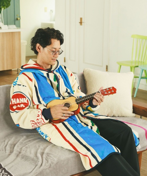 シリーズ累計販売10万枚以上の大好評着るフリースブランケットシリーズが今年も登場!軽いのに暖かい、ふわふわの肌触りでずっと包まれていたくなる気持ち良さ。寒い季節をあったかく過ごせる、大人気アイテムシリーズ♪ーーーマイクロファイバーを使用したふわふわで滑らかな肌触りで、さっと羽織るだけで暖かい着るブランケット。指先まで隠れるリブ付きの袖と、フード付きで冷えやすい手先、首元までしっかり温めてくれます。また、袖リブ仕様のため、洗顔や水回りの家事をやっても、ずり落ちてくる心配もありません。ユニセックスで着られて家族や夫婦でシェアできるのもうれしいポイント。男性でも余裕のあるサイズ感でありながら、小柄な女性でも引きずらずに着られる程よい長さの設計です。中に厚手のインナーも着られるゆったり感です。ポケット付きな点も、さらに使いやすさ◎。今年も人気の柄をはじめ、新柄を取り入れた4柄展開!日常で取り入れやすい4色展開です。※リバーシブルではありません。お家でぬくぬくリラックス♪寒い冬を楽しく暖かく過ごせます。洗濯も自宅で簡単にでき、お手入れも楽々。うれしい抗菌防臭機能付きでデイリーユースにもぴったりのアイテム。ーーー【おすすめ利用シーン】夜寝る前のリラックスタイムに。寒い朝の起きがけに。キャンプなどのアウトドアシーンに。在宅勤務や勉強時に。【お手入れの仕方】洗濯液の温度は30℃を限度し、洗濯機で非常に弱い洗濯が可能。日陰のつり干しを推奨。※屋外での撮影画像は光の加減で実際の商品より明るく見えたり、風合いが異なって見える場合がございます。商品の色味はスタジオ撮影の画像を参考にして下さい。-------------------------------------≪お買い物をよりお楽しみいただくために≫◆商品のお気に入り登録(ハートマークをクリック)完売カラーの再入荷通知や、完売間近の通知、セールの通知も受けることができます。◆ブランドのお気に入り登録新商品や再入荷など、いち早くブランドのお得な情報を受け取ることができます。-------------------------------------