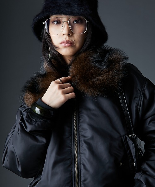 秋冬の主役級アウター!フェイクファーカラーMA-1ブルゾン ■デザイン ミリタリーテイストのMA-1ブルゾンに、 取り外し可能なフェイクファーカラーをあしらった、トレンド感溢れる一着です。 ボリューム感のあるフェイクファーが顔周りを華やかに演出し、防寒性も高めてくれます。 短めの丈感とゆったりとしたシルエットは、どんなボトムスとも相性抜群で、スタイルアップ効果も期待できます。 フロントのジップアップデザインや袖のユーティリティポケットなど、MA-1らしいディテールも健在です。 ■素材 程良い光沢感のナイロンツイル生地を使用。 ■おすすめのスタイリング カジュアルなデニムスタイルにはもちろん、 きれいめなスカートやワンピースに羽織れば、甘辛ミックスなスタイリングが完成します。 インナーには、シンプルなTシャツやニットを合わせるのがおすすめ。 足元はスニーカーで抜け感を出すと、より今っぽい着こなしが楽しめます。 肌寒い季節のデイリーユースから、ちょっとしたお出かけまで、幅広いシーンで活躍するアイテムです。 <仕様> 前ファスナー フェイクファー衿は取り外しできます。 透け感:なし 伸縮性:なし 生地の厚み:普通 光沢感:なし 裏地:あり(総裏) ポケット:あり(前2つ・左袖1つ) 季節:秋・冬向き シルエット:普通 <洗濯方法> 手洗い <対応サイズ> M :バスト:79~90/ウエスト:64~69/ヒップ:91~95 L :バスト:86~94/ウエスト:69~77/ヒップ:92~100 LL :バスト:93~101/ウエスト:77~85/ヒップ:97~105 3L :バスト:100~108/ウエスト:85~93/ヒップ:102~110 4L :バスト:107~115/ウエスト:93~101/ヒップ:107~115 5L :バスト:114~122/ウエスト:101~109/ヒップ:112~120 ※こちらはヌードサイズです。 ※平置きのアイテムサイズとは異なる計測方法となりますのでご了承ください。 #ゆったり#体型カバー#二の腕カバー #大きいサイズ#プラスサイズ#大きいサイズレディース #M#L#LL#3L#4L#5L 【気になる商品はお気に入り登録がおすすめ】 ▼商品のお気に入り登録 完売カラーの再入荷通知や、ラスト1点の通知、セールの通知などお得な情報が受け取れます。 ▼ブランドのお気に入り登録 新商品や再入荷など、ブランドのお得な情報をいち早く受け取ることができます。 【GEVS.(ジェイヴィス)】 ヴィンテージSHOPのdead stockの中から宝物を探すようなワクワク感を。 GEVS.は一目惚れするアイテムと気分が上がるトレンドのスタイリングがいっぱいの空間を提供します。 ▼公式Instagram @gevs._officialsite
