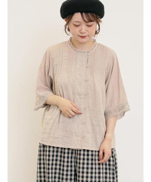 表面感のあるドビーストライプにレース切り替えデザインが、大人可愛く魅せるブラウス。 ふっくらとしたコクーンシルエットは、ボディラインを拾いづらく、スタイルアップにも効果的。 すっきりとしたノーカラーデザインで、一枚はもちろん、レイヤリングや羽織りと着回し力もバツグンです。 ※商品画像は、撮影環境やお客様のご利用のPC・スマートフォンのモニター環境などにより実物と色味に差異がある場合がございます。