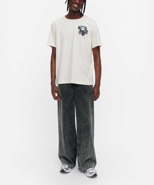 『Marimekko Kioski』 マリメッコのアイコン的プリントを再解釈し、無限のワードローブを提案するジェンダーニュートラルなストリートウェア Marimekko Kioski(マリメッコ キオスキ)。「他人の真似はせず、自分らしく」をキーワードに、作り物ではないオーセンティックなスタイルを追求したコレクション。【テキスタイルデザイン:Maija Isola(マイヤ・イソラ)】 Unikko(ウニッコ):花Marimekkoを代表するUnikko柄の水彩調モチーフを左胸にあしらった半袖Tシャツ。オーバーサイズでユニセックス仕様のリラックス感あるシルエット。波打つようなブランドロゴバックプリントもスタイリッシュなデザインポイント。お手持ちのボトムに合わせてモダンな着こなしが完成します。※品質表示は、Marimekko社の付けた洗濯表示を日本国内の基準に合わせ付け替えております。本国のタグはカットされておりますので、予めご了承ください。※商品ひとつずつの柄の出かたが異なるため、表示画像のディテールと多少異なるデザインのものが届く場合がございます。予めご了承ください。モデル着用サイズ:M/038/004