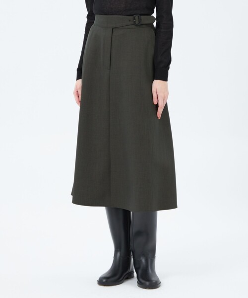 <ハリのある素材で美しいフレアシルエットを叶えるグルカスカート>ウエストデザインがポイントのミディ丈フレアスカート。適度なはりとふくらみを合わせ持つ梳毛調素材で、上品なフレアシルエットを実現。贅沢なフレア分量がありながら、ヒップ回りはタックなどがないミニマルなデザインで、メリハリのあるシルエットが特徴です。【素材】ドライでハリのある風合いが特長の梳毛調素材。シックアンドシンの糸(太い部分と細い部分のある変わり糸のことをさします。)をタテヨコに使用することで独特のムラ感が生まれ、天然素材のようなナチュラルなルックスに仕上がっております。おすすめ着用期間:春/秋/冬※34サイズはオンラインストア、ルミネ新宿店、柏髙島屋ステーションモール店、ジェイアール名古屋タカシマヤ店、山形屋店、博多阪急、阪神梅田本店のみでのお取扱いになります。※サイズについては、仕様書のサイズを記載しており、多少の誤差が出る場合がございます。※この商品はサンプルでの撮影を行っています。実際の商品とイメージ、仕様が異なる場合がございます。