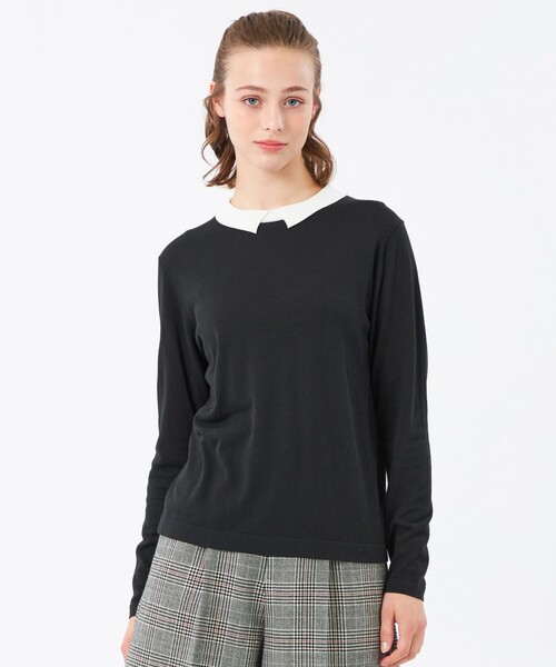 <一枚できちんと見えを叶えるバイカラー襟ポロニット>毎年人気のバイカラー襟ニット。2025AWは秋らしいカラーバリエーションを揃え、配色の組み合わせも印象的に。上品な雰囲気に仕上がる襟デザインは、コーディネート次第で幅広いシーンに対応できるアイテムです。【素材】アクリルの軽さと柔らかさ、ナイロンの強度と耐久性、そして綿のナチュラルな風合いと吸湿性をバランスよくミックスされた交撚糸を使用しています。3本撚りのしっかりした糸構造で、ふくらみが有りつつも軽やかで適度なコシが感じられる素材です。おすすめ着用期間:春/秋/冬※36サイズはオンラインストア、ルミネ新宿店、柏髙島屋ステーションモール店、ジェイアール名古屋タカシマヤ店、山形屋店、博多阪急、阪神梅田本店のみでのお取扱いになります。※この商品はサンプルでの撮影を行っています。実際の商品とイメージ、仕様が異なる場合がございます。