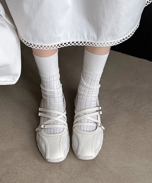 【 メリージェーン メッシュスニーカーサンダル 】 ■ポイント -トレンドにぴったりなフラットバレエスニーカー -アッパー部分がメッシュ素材で通気性抜群◎ -メッシュと同系色の異素材のミックスデザインでスタイリッシュな印象に。 ■おすすめコーデ ショート丈のスカートやパンツと合わせ、ルーズソックスやハイソックス、レースソックス と合わせるとトレンドっぽいスタイルや韓国っぽいガーリースタイルに仕上がります☆ ルーズなデニムやワンピースとの合わせもこなれ感を演出してくれます。 ※商品画像は撮影時の光や角度により、実物の色味と異なって見える場合がございます。 ※撮影はサンプル品を使用しており、実際の商品と仕様・加工・サイズが若干異なる場合がございますので、予めご了承ください。 ※また、生産時期によりサイズやカラーに誤差が生じる場合がございます。予めご了承くださいませ。 ------------------------------ 【 MEMECLE 】 韓国ストリートやカジュアルスタイルのトレンドをミックスし デイリーに着やすい洋服から特別な日に着れるスタイルまで幅広く提案したブランドです。 「これ一枚で可愛い」を叶えます。 ★商品のお気に入り登録 完売カラーの再入荷や、ラスト1点のお知らせ、セール情報などの通知を受け取ることができます。 ★ブランドのお気に入り登録 新商品や再入荷など、お得な情報をいち早く受け取ることができます。 -ブランドの最新情報はinstagram【@memecle_official】でご確認いただけます! CZ_0002