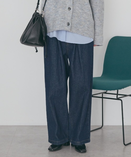 2025 Autumn&WinterAMERICAN HOLIC DENIM COLLECTIONウエストタックときれいめカラーでスラックスのような印象のワイドデニム。横に広がりすぎないタック位置とボディラインを拾いにくいゆとりのあるフォルムがすっきりとしたスタイルに魅せてくれます。センタープレスが美しいレッグラインを演出。綿100%のデニムで仕立て、ロングシーズンで活躍するおすすめのアイテムです。Sustainable Denim サスティナブルデニム環境に配慮した素材、加工技術を採用したエシカルな商品です。・『EIM』加工・回収ペットボトルが原材料の環境配慮型ファスナー『NATULON』使用透け感[なし]生地の厚さ[普通]光沢感[なし]伸縮性[なし]裏地[なし]ポケット[あり]※モデル着用画像は、光の当たり具合で色味が違って見える場合がございます。商品の色味は、物撮りの画像をご参照ください。●AMERICAN HOLIC ● (アメリカンホリック)大人の女性の毎日を軽やかで豊かにするブランド。カジュアルなのにオシャレ、コーディネートも楽。ONにもOFFにも等身大で楽しむオトナの日常着をテーマに、スタイリッシュかつ自然体を楽しめるカジュアルスタイルを提案します。 ▼ 商品のお気に入り登録がおすすめです ▼商品ページ内のハートマークをクリック。完売時の再入荷や、最後の1点の通知、お得なお値下げの際の通知を受ける事ができます。【お知らせ】ページでも通知が確認できます。