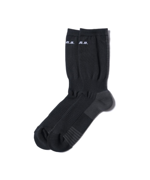 部分ごとに編み立てや素材を変えることで、着用時の快適性を飛躍的に高めたショート丈のゲームソックス。フロント上部にF.C.R.B.ロゴだけをあしらったオーセンティックなデザインが普遍的なフットボールスタイルを演出します。
