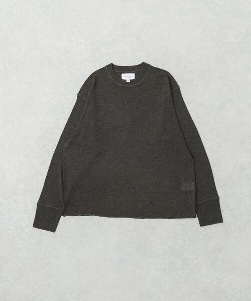 【空気感を纏う。軽やかで、上品なレイヤードニット】 一枚で着ても、レイヤードでも、スタイルに差をつける新感覚のアイテムです。 シングルジャカード編みで表現されたハニカム柄は、PVA加工による独自の膨らみと、シアー感のある透け感が魅力。 サーマルデザインのクラシックさと、現代的なシアー素材が融合し、ソフトな風合いと軽やかな着心地を実現しました。レディース共通素材なので、ジェンダーレスなスタイリングも楽しめます。 -MATERIAL- ・最大の秘密は、独自の加工技術にあります。シングルジャガードで表現したハニカム柄 ・生地に膨らみとソフトな風合いが生まれ、見た目以上の軽やかさを実現 ・シアー感(透け感)のある素材なので、重ね着した際に美しいレイヤーを演出 -DESIGN- ・クラシックなサーマルデザインをベース ・シアー感をプラスした斬新なアイテム ・適度なフィット感と、リラックスした着心地 -COORDINATE- ・Tシャツやタンクトップの上から着用し、ハニカム柄と透け感を活かしたクリーンなスタイル ・シャツやジャケットのインナーとして、袖や首元をチラ見せすると、着こなしに奥行きが生まれます 【new basic / ニューベーシック】 日常に寄り添うベーシックなアイテムに、一見すると普通ではない素材、計算されたディテール、そして美しいシルエットを組み合わせることで、心地よさと違和感が共存するスタイルを創り出します。 服を"着る"だけでなく"楽しむ"ことへの期待に応え、あなたのファッションに新たな刺激と発見をもたらします。 【2025 Autumn/Winter】【25AW】 ※この商品は、長時間強い日光や照明を受けますと、変色するおそれがあります。ご着用や保管の際は充分にご注意ください。 ※濃色品は、着用や洗濯の摩擦により毛羽立ちがおこり、徐々に白っぽく見えることがあります。 ※その他お取り扱いに関しましては、商品に付属のアテンションタグをご覧ください。 総重量 : 約130g ※商品画像は、光の当たり具合やパソコンなどの閲覧環境により、実際の色味と異なって見える場合がございます。予めご了承ください。 ※商品の色味の目安は、商品単体の画像をご参照ください。 ▼お気に入り登録のおすすめ▼ お気に入り登録商品は、マイページにて現在の価格情報や在庫状況の確認が可能です。 お買い物リストの管理に是非ご利用下さい。 素材感 LXLM
