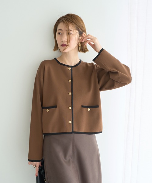 ジャケットのようなきちんと感のあるニットカーディガン。ハイゲージニットの上質な風合いとハリ感が、洗練されたスタイルを演出します。配色のパイピングと金ボタンがコーディネートを引き締めるアクセントに。程よいハリ感と軽い着心地が魅力です。カジュアルなボトムと合わせても品よくまとまり、オンオフ問わずに活躍するおすすめの一枚です。透け感[なし]生地の厚さ[普通]光沢感[なし]伸縮性[あり]裏地[なし]ポケット[あり]-------------------------------------------●YECCA VECCA●(イェッカ ヴェッカ)「大人のハッピーモードな着映え服」毎日を自分らしく、ハッピーに過ごすことにポジティブな女性のためのリアルクローズ。キーワードは「遊び心のある、女性らしいモード服」でも「コンフォート」。都会的で女性らしいムードを大切に着ていて心地よく、気持ちが上向きになるような遊び心のあるデザインウェアをラインナップ。自分自身がわくわく出来る洋服で日常を最大限に楽しむ大人の為のスタイルを提案していきます。▼商品のお気に入り登録がおすすめです ▼商品ページ内のハートマークをクリック。完売時の再入荷や、最後の1点の通知、最後の1点など、お得なお値下げ情報を受けとる事ができます。【お知らせ】ページでも通知が確認できます。-------------------------------------------
