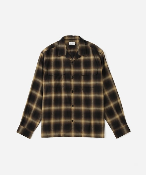 【Design】 程よくゆとりのあるボックスシルエットは、リラックスした印象でレイヤードとしても着用しやすいデザインになっています。 落ち着いた配色のオンブレチェック柄を活かしたミニマルなデザインは、汎用性が高い大人のオープンカラーシャツに仕上がっています。 【Point】 生地、縫製ともに日本製にこだわったクラシックなオープンカラーシャツです。 【Material】 程良いふくらみと適度な落ち感が特徴的なコットンレーヨンの先染めオンブレチェックに軽い起毛加工を施したフランネルなので上品さの中に無骨さを感じる素材になっています。 【Composition】 組成: コットン 58% レーヨン 42% 【Country of origin】 原産国:MADE IN JAPAN 【Size Specs】 S/ 着丈 68 | 肩幅 49 | 身幅 61.5 | そで丈 60 M/ 着丈 70 | 肩幅 51 | 身幅 63.5 | そで丈 61 L/ 着丈 72 | 肩幅 52 | 身幅 65.5 | そで丈 63 XL/ 着丈 74 | 肩幅 54 | 身幅 67.5 | そで丈 64 【モデル情報】 オリーブ:身長179cm 着用サイズ L size ブルー:身長186cm 着用サイズ L size ※画像の商品はサンプルとなります。 ※実際の商品と色味、仕様、加工、サイズ、素材等が若干異なる場合がございます。 Item Code:BBG65150