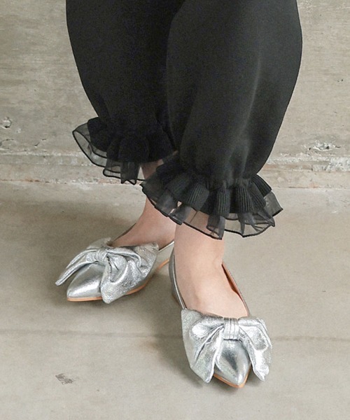 ビックリボンパンプス ■商品説明 リボンデザインが主役のパンプスは、 ハリ感とボリュームが出て高見えする足元に。 ポインテッドトゥなので甘すぎず、 フラットヒールにすることでカジュアルなコーディネートにも合わせやすい1足です。 安定カラーのブラック、メタリックカラーのシルバーの2色展開なので デイリー使いからオケージョンシーンにも活躍します。 ★STAFFが試着しました★ 【STAFF D】 買うなら35(22.5cm) ・足のサイズ:21.0cm ・甲普通/幅狭 35(22.5cm)を素足で履きました。 ポインテッドのデザインなので、幅が狭めですが小さい足の私にはピッタリでした。 カカトも特に浮く感じはなく、ローヒールで履きやすいです。 【STAFF N】 買うなら37(23.5cm) ・足のサイズ:22.0cm ・甲普通/幅狭め 素足で35(22.5cm)を着用しましたが、つま先が少し当り、かかとも窮屈に感じました。 37(23.5cm)を着用したところ、つま先が当たらない程のぴったり感でした。 秋口も靴下合わせでも可愛いと思うので、同じサイズ感の方は37(23.5cm)がおすすめです。 【STAFF R】 買うなら39(24.5cm) ・足のサイズ:23.5-24.0cm ・甲普通/幅普通 37(23.5cm)は足を入れることはできますが、全体的にかなりきつく、歩くと擦れて痛みが出ました。 39(24.5cm)はゆとりがあるサイズ感ではありますが、足幅などはピッタリサイズで中敷きなどで調整すれば快適に履けそうです。 ■サイズ(cm) 35(22.5cm) 足幅 (靴底)約7.3、ワイズ 約13.5 37(23.5cm) 足幅 (靴底)約7.5、ワイズ 約13.5 39(24.5cm) 足幅 (靴底)約7.5、ワイズ 約13.5 ヒール 約1.6、ストーム 約0.3 [重量]片足 約220g (37/23.5cm) ※平置き採寸のため若干のブレがございます。 ~*~*~*~*~*~*~*~*~*~*~*~*~*~* ▼ 商品のお気に入り登録 ▼ 完売カラーの再入荷通知や、ラスト1点の通知、 セールの通知も受け取ることができます。 ぜひご登録ください♪ ▼ ブランドのお気に入り登録 ▼ 新商品や再入荷など、 ブランドのお得な情報をいち早くお知らせ! ぜひご登録ください♪