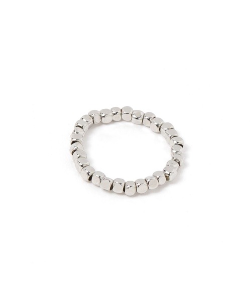 シンプルなデザインのリング。 メタルのビーズがゴムで繋がっていて伸縮性があります。 甘くなりすぎずオンオフ問わずにお使いいただけます。