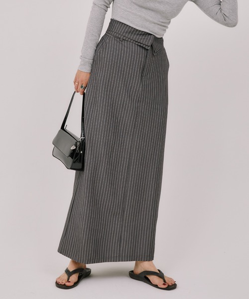 「フラップストライプスカート」 マニッシュなストライプ柄が目を惹く、ロングタイトスカート。 腰元の折り返しディテールがポイントになり、シンプルながらもひとクセ効いたデザイン。 すっきりとしたIラインシルエットに、後ろスリットで抜け感をプラス◎ スタイルアップも叶えつつ、動きやすさもしっかりキープしています。 タンクやシャツ、スウェットまで、どんなトップスとも合わせやすく オン・オフ問わず活躍する着回し力の高い1枚です。 《スタイリング》 ショート丈のTシャツやタンクトップを合わせると腰回りのディテールが引き立ち、スタイルアップ効果も抜群です。 ゆったりとしたスウェットと合わせてカジュアルスタイルも◎ 足元はボリュームのあるブーツやスニーカーなど、重心を下に置くことで洗練されたモード感を演出することができます。 ※販売商品以外はモデル私物となります。 LIENCOEUR(リアンクール) ー身に纏うだけで、凛とした気分にー 「都会的で洗練されていながらも心地よく、ファッションを日常的に楽しむことができる」 「自分のスタイルに落とし込みやすいアイテムに、さりげない新しさを」 普段のクローゼットに彩りをプラス。 毎日を大切に過ごす、すべての人に寄り添うアイテム・スタイルを提案します。 ▼商品のお気に入り登録 完売カラーの再入荷通知や、ラスト1点、セールの通知などお得な情報をお知らせいたします。 ▼ブランドお気に入り登録 新商品や再入荷など、いち早くブランドの情報を受け取ることができます。 【注意事項】 ※商品を使用前に、タグ等に記載されている「取り扱い上の注意書き」、「洗濯表示」を必ずご確認ください。 ※商品画像は、光の当たり具合や閲覧環境により、実際の色味と異なって見える場合がございます。あらかじめご了承ください。