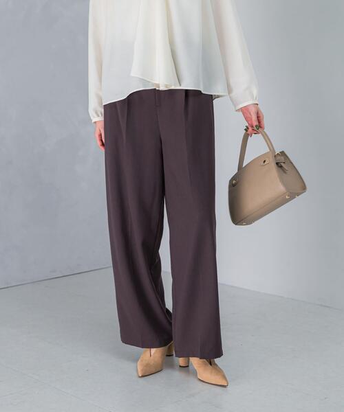 【この秋一本持っていたい、ON/OFFで重宝するイージーパンツ】しなやかでほんのりとした光沢感が特徴的な、ウーステッド素材のイージーパンツ。ウールブレンドの温かみのある素材ながら、毛羽立ちが少なく、ご自宅でのお手入れが可能なイージーケア仕様です。ウエストはバックゴム仕様でリラクシーな履き心地ながら、すっきりとしたストレートシルエットで、きちんと感もプラス。デイリーはもちろん、ブラウスやジャケットと合わせてオフィスシーンにもお勧めな一本です。同生地のイージーケアウーステッドシャツ(品番:RAA7-23S702)とセットアップとしての着用もお勧め。【2025 Autumn/Winter】【25AW】※この商品は、水分や汗、摩擦(特に湿った状態での摩擦)などにより色泣き、色移りする場合がありますので着用時、クリーニングの際は充分ご注意ください。※濡れたまま放置しますと、他のものに色移りしたり、色泣きすることがありますので、ご注意ください。※その他お取り扱いに関しましては、商品に付属のアテンションタグをご覧ください。※商品画像は、光の当たり具合やパソコンなどの閲覧環境により、実際の色味と異なって見える場合がございます。予めご了承ください。※商品の色味の目安は、商品単体の画像をご参照ください。▼お気に入り登録のおすすめ▼お気に入り登録商品は、マイページにて現在の価格情報や在庫状況の確認が可能です。お買い物リストの管理に是非ご利用ください。素材感透け感 : なし伸縮性 : なし裏地 : あり(膝下まで)光沢 : なしポケット : ありNAVY:165cm(38) / 165cm(38)BURGUNDY:165cm(38)3638