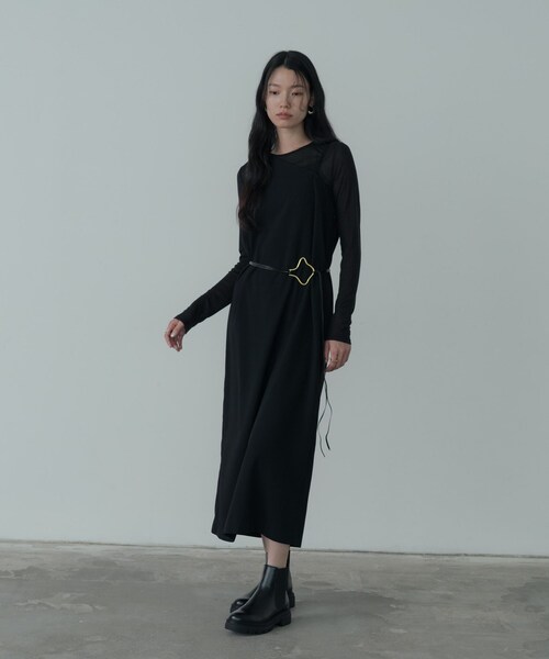 Design Pointシンプルでありながら洗練された印象のキャミソールドレス。ストレートなシルエットとサイドスリットが特徴で、動きやすさを考慮したデザイン。インナーとのレイヤリングで季節感を楽しめるアイテムです。Styling Point長袖のトップスと重ねることで、カジュアルな印象を与えつつエレガントさも演出。ブーツやヒールと合わせることでスタイルアップ効果を狙えます。シンプルなアクセサリーを添えることで、より洗練されたコーディネートに仕上がります。Fabric Point滑らかな質感の素材が心地よい着心地を提供。しっかりとした生地感で、シルエットを美しく保ちながらも、動きやすさを兼ね備えています。長時間の着用でも快適さを感じられるアイテムです。モデル身長:174cm 着用サイズ:38(M)*****************************気になるアイテムは【お気に入り登録】がおすすめ!気になるアイテムのページにある「ハートマーク」をクリックして簡単に追加できます。登録すると、再入荷通知やお値下げ情報をメルマガにてお知らせします。マイページにてお気に入り一覧もチェックできます。*****************************※照明の関係により、実際よりも色味が違って見える場合があります。また、パソコン・スマートフォンなどの環境により、若干製品と画像のカラーが異なる場合もございます。店舗へのお問い合わせ商品番号:523-54004●製品寸法:34(S):着丈124cm B80cm H94cm38(M):着丈130cm B86cm H100cm備考: