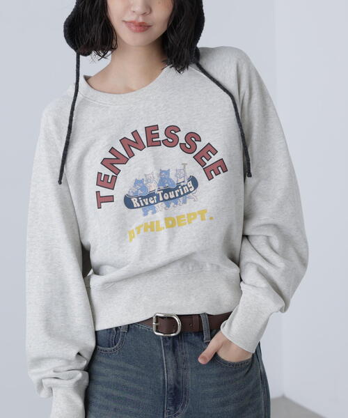 柔らかく肌触りの良い裏毛生地を使用したとても着心地が良いスウェットトップス。春、秋、冬と3シーズン着られる万能な生地感です。アーチ型のブランドロゴと猫たちがカヌーで川下りを楽しむ様子のグラフィックが描かれたデザイン。短めの丈なので今季トレンドのボリュームのあるパンツは勿論、スカート、ミニ丈ボトム、ワンピースの上に着るなど様々なコーディネートを楽しめます。【Tennessee River・テネシー】アメリカ南部の伝統とクラシックなスタイルを受け継ぐテネシーリバー。シンプルで洗練されたデザイン、高品質な素材、そして優れた耐久性が魅力。1980年代初頭、アラバマ州フローレンスで誕生したTennessee Riverは、テキスタイル産業が盛んなこの地で成長し、「Tシャツの首都」として広く知られるようになりました。コットンの風合いを活かしたアイテムは、スポーツウェアからカジュアルウェアまで幅広く展開され、時代を超えて愛され続けています。※モデルの着用画像の場合、光の当たり具合により、実際の色味と異なって見えることがございます。色味は、商品単体の画像をご参照ください。商品特性■透け感:なし■生地の厚さ:普通■裏地:なし■伸縮性:あり■光沢:なし■シルエット:スタンダード---------------------------------------------------◆商品のお気に入り登録◆お気に入りアイテムの値下げ・再入荷・在庫1点などの通知を受け取ることができます。◆ブランドのお気に入り登録◆新商品や再入荷、セール、クーポン配布などお得な情報を受け取ることができます。---------------------------------------------------