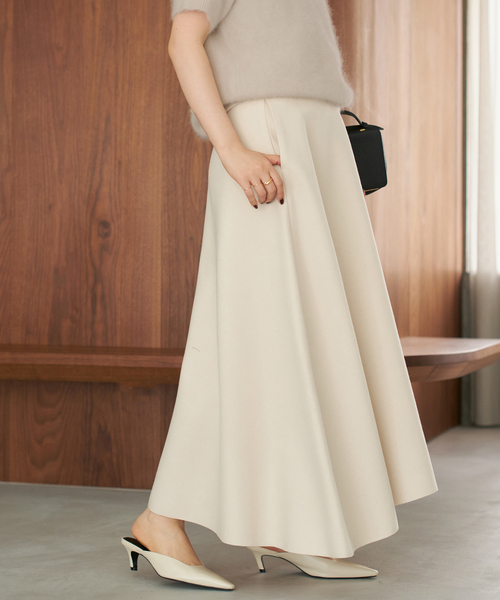 しなやかなウール素材を使用した、美しいシルエットが目を引くフレアスカート。 上質な素材を使用し、暖かさと柔らかな肌触りを両立しました。 裏地には滑らかなキュプラを施すことで、快適な着心地と美しいドレープを実現。 優雅なフレアシルエットが女性らしさを引き立て、たっぷりとしたボリューム感が今年らしいアイテム。 シンプルながらエレガントな印象で、秋冬コーデの主役になる一着です。 ********************** 透け感:なし 裏地:あり 伸縮性:なし 光沢感:なし 生地の厚さ:やや厚手 ********************** ※取り扱いについては、商品についている品質表示でご確認ください。 ※ 店頭及び屋内外での撮影画像は、光の当たり具合で色味が違って見える場合があります。 商品の色味は、商品アップ画像をご参照ください。 また、お客様のお使いのPCのモニター環境などにより色味が違って見える場合があります。 予めご了承の上ご注文ください。 本体:ドライクリーニング