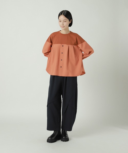 Design & Fabric-異素材のコンビネーションと立体感のあるシルエットが特徴的なバイカラーブラウス。-前身頃にはギャザーを寄せたAラインシルエット。-袖口はシャツのようなカフス仕様。-ポリエステル・レーヨンを使用したストレッチポンチ素材。-毛羽立ちづらく、ドライな肌触りが特徴。-程よい肉厚のポリエステルツイルをドッキング。《BRAND CONCEPT》「着る人にも、見る人にも心地よく、日々に、新しいスパイスを加えるような“日常着”」There is a calming feeling and a sense of delight surrounding those who wear ZUCCa.ZUCCa delivers a little spice into our daily lives.----------------------------------------------------------------------お気に入り登録のオススメ▼商品のお気に入り登録▼再入荷、残り1点、セールなどの通知を受け取ることができます。▼ブランドのお気に入り登録▼新商品や再入荷、ショップのおすすめトピックスなど、いち早くブランドの情報を受け取ることができます。----------------------------------------------------------------------