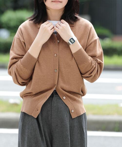 一枚着、インナー、羽織りとしても ロングシーズン着回せる、ウールニットカーディガン リサイクルウールを使用した14Gの襟付きカーディガン。ウール100%なので吸放湿性と交換防臭と弱撥水性が一般的に備わっております。繊維自体の水分率も高いので静電防止効果もあります。ハイゲージでシンプルデザインは、プルオーバーとしてもカーディガンとしても着用できる、汎用性のある1枚。自宅で洗えるイージーケアも嬉しいポイント。 【2025 Autumn/Winter】【25AW】 ※この商品は、ピリングができやすい素材を使用しています。発生したピリングは手でむしり取ると毛羽立ちや糸切れなどの原因になりますので、小バサミなどを使い元糸を傷つけないようにひとつひとつ取り除いてください。 ※素材や編み方の性質上、引っ掛け、引っ掛かりが起きやすい性質をもっています。お取り扱いにはご注意ください。 総重量 : 約340g ※商品画像は、光の当たり具合やパソコンなどの閲覧環境により、実際の色味と異なって見える場合がございます。予めご了承ください。 ※商品の色味の目安は、商品単体の画像をご参照ください。 ▼お気に入り登録のおすすめ▼ お気に入り登録商品は、マイページにて現在の価格情報や在庫状況の確認が可能です。 お買い物リストの管理に是非ご利用下さい。 素材感 透け感 : なし 伸縮性 : あり 裏地 : なし 光沢 : なし ポケット : なし One