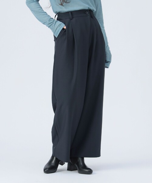 今から春まで、3シーズン対応可能◎ 快適なのにきちんと見えの美脚パンツ ■デザイン フロントのラップ風デザインが特徴的なスラックスパンツ。腰回りをすっきりと見せる2タックデザインで、美しいシルエットを演出します。後ろウエストはゴム仕様になっているため、ストレスフリーな快適な着心地です。 ■コーディネート 同素材のジャケット【品番:43-16-0028-152】と合わせれば、洗練されたセットアップスタイルが完成。また、ニットジャケットやカーディガンと合わせれば、上品ながらもリラックス感のあるスタイリングに。どんなトップスとも相性が良く、オフィスからデイリーまで幅広く活躍します。 ■素材 さらりとした肌触りの、きれいめな生地感を使用しています。シーズンを問わず着用でき、上品なドレープが魅力です。 ■ケア方法 ドライクリーニングのみ可(詳細は商品についている品質表示ラベルをご覧ください) 生地の厚さ:普通 透け感:なし 伸縮性:なし 光沢感:なし 裏地:なし ※光の当たり具合やパソコンなどの閲覧環境によって実際の色味と異なって見える場合がございます。予めご了承ください。 ※商品の色味は商品単体で撮影した画像をご参照ください。