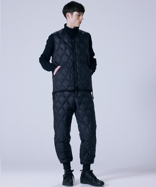 【UNISEX】ミリタリー ダウンパンツ-ソフトシェル(TAION-131LSML-1)"ミリタリーラインのベストセラー。履き心地を重視した、裾リブ仕様のミリタリーダウンパンツ"ミリタリーラインのベストセラー。履き心地を重視した、裾リブ仕様のミリタリーダウンパンツ。軽くて柔らかな生地を使用し、保温性に優れた800FPのダウンを採用。ヘチマキルトのダウンステッチが、ミリタリー感を演出。暖かくて履きやすく、裾もリブになっているので風も通しません。軽くて暖かく柔らかい、ミリタリーテイストのダウンパンツです。同素材のトップスとセットアップで着用することもお勧めします。【商品スペック】・柔らかく張りのある高密度生地を使用しています。・800FPの上質なダウンを使用しています。・前たてには、YKKファスナー+YKK金属スナップボタン(TAION刻印)を使用しています。・左右脇と右後には、YKKファスナーポケットが付いています。・裾は、風が入りにくいよう、リブ仕立てにしています。・収納袋が付いています。コンパクトに収納ができ持ち運びに便利です。外出や旅行に最適です。・ご家庭での洗濯も可能です。※男女兼用サイズです。 女性の方:XS〜Sサイズをお勧めします。ルーズに着用希望の方はMサイズをお勧めします。 また、女性用TAION-W131LSML-1もございます。【TAION(タイオン)について】TAIONは、インナーダウン専業ブランドとして培ってきたノウハウを活かし、定番商品から様々なシーンで着用できるインナーダウン商品を開発しています。ーーーーーーーーーーーーーーーー〈TAINOのモノづくり〉・TAIONのダウンは、パーツにダウンを詰めた後にダウンステッチを入れます。そうすることでダウンステッチ周辺にもしっかりダウンが入り、 外気の進入を防ぎ、体温によりダウン内で温まった空気を逃がしにくい構造としています。・TAIONは、様々なインナーダウン商品を展開しています。 カテゴリーや商品用途に合った、最適な生地を選択し採用しています。生地の表面には、*撥水加工をかけることで汚れがつきにくく、裏面にはダウンが吹き出しにくいACコーティングを施しています。(*撥水加工:雨具のような超撥水加工ではありませんのでご注意ください。)・TAIONのダウンステッチ糸には、 生地とダウンに最適な、ダウン専用糸を使用しています。ダウン専用系を使用することで、ダウンの吹き出しを最小限に抑えます。・一般で使用されるダウン(一般:600FP前後)よりも軽くて、 暖かい空気をたくさん含むことができます。*一部800flpではないアイテムもあります。予めご了承ください。ーーーーーーーーーーーーーーーー