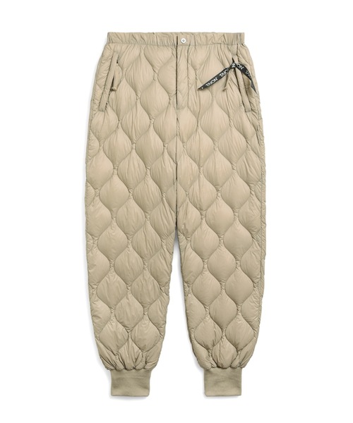 【WOMEN】ミリタリー ダウンパンツ-ソフトシェル(TAION-W131LSML-1) "ミリタリーラインのベストセラー。履き心地を重視した、裾リブ仕様のミリタリーダウンパンツ" ミリタリーラインのベストセラー。 履き心地を重視した、裾リブ仕様のミリタリーダウンパンツ。 軽くて柔らかな生地を使用し、保温性に優れた800FPのダウンを採用。 ヘチマキルトのダウンステッチが、ミリタリー感を演出。 暖かくて履きやすく、裾もリブになっているので風も通しません。 軽くて暖かく柔らかい、ミリタリーテイストのダウンパンツです。 同素材のトップスとセットアップで着用することもお勧めします。 【商品スペック】 ・柔らかく張りのある高密度生地を使用しています。 ・800FPの上質なダウンを使用しています。 ・前たてには、YKKファスナー+YKK金属スナップボタン(TAION刻印)を使用しています。 ・両脇と右後には、YKKファスナーポケットが付いています。 ・裾は、風が入りにくいようリブ仕立てにしています。 ・収納袋が付いています。コンパクトに収納ができ持ち運びに便利です。外出や旅行に最適です。 ・ご家庭での洗濯も可能です。 ※女性用です。 【TAION(タイオン)について】 TAIONは、インナーダウン専業ブランドとして培ってきたノウハウを活かし、定番商品から様々なシーンで着用できるインナーダウン商品を開発しています。 ーーーーーーーーーーーーーーーー 〈TAINOのモノづくり〉 ・TAIONのダウンは、パーツにダウンを詰めた後にダウンステッチを入れます。 そうすることでダウンステッチ周辺にもしっかりダウンが入り、 外気の進入を防ぎ、体温によりダウン内で温まった空気を逃がしにくい構造としています。 ・TAIONは、様々なインナーダウン商品を展開しています。 カテゴリーや商品用途に合った、最適な生地を選択し採用しています。 生地の表面には、*撥水加工をかけることで汚れがつきにくく、裏面にはダウンが吹き出しにくいACコーティングを施しています。 (*撥水加工:雨具のような超撥水加工ではありませんのでご注意ください。) ・TAIONのダウンステッチ糸には、 生地とダウンに最適な、ダウン専用糸を使用しています。 ダウン専用系を使用することで、ダウンの吹き出しを最小限に抑えます。 ・一般で使用されるダウン(一般:600FP前後)よりも軽くて、 暖かい空気をたくさん含むことができます。 *一部800flpではないアイテムもあります。予めご了承ください。 ーーーーーーーーーーーーーーーー