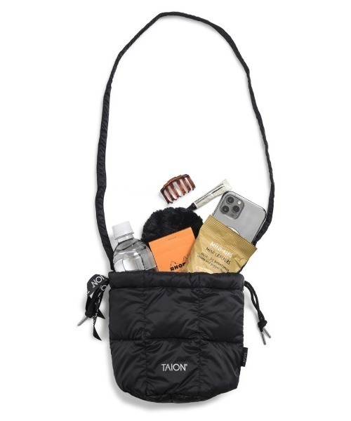 【GOODS】ドローストリング ダウンバッグS(TAION-DST01-S) "普段使い〜旅行のサブバッグまで。斜め掛けもできる巾着型ダウンバッグ" 普段使い〜旅行のサブバッグまで、斜め掛けもできる巾着型ミニダウンバッグ。 800FPダウンを使用し、軽くて柔らかなフォルムが特徴的。 見た目はコンパクトながら、スマートフォン・財布・鍵・化粧品など、必要な小物がしっかり収納可能。 ワードローブのアクセントとしても活躍します。 ※ギフトにもオススメです。 【商品スペック】 ・800FPの上質なダウンを使用しています。 ・リフレクタープリント"TAION"を入れています。 ・ショルダーストラップが付いています。 ・ご家庭での洗濯も可能です。 ※男女兼用です。 【使用シーン】 ・ベーシックなデザインで使用シーンを選びません。 ・ちょっとしたお出かけや買い物などの普段使いを始め、サブバッグ使いとしてもおすすめです。 ・カジュアルシーンからちょっとしたお呼ばれまでカバーするアイテム。 ・ストリングバッグ仕様で中身が飛び出にくいため、アクティブに動くシーンでも活躍します。 【コーディネート】 ・スタンダードなカラーとアイテムなので、どんな着こなしにもマッチ。 ・ダウンジャケットと合わせてセットアップ風コーディネートや、ロングコートやチェスターコート、ブルゾンと合わせて綺麗めなコーディネートもおすすめ。ボアジャケットやフリースに合わせてカジュアルにも着こなせます。 ・ボトムはスカート、パンツ問わず合わせていただけます。ダウンスカートやダウンパンツと合わせたリンクコーデも。 【TAION(タイオン)について】 TAIONは、インナーダウン専業ブランドとして培ってきたノウハウを活かし、定番商品から様々なシーンで着用できるインナーダウン商品を開発しています。 ーーーーーーーーーーーーーーーー 〈TAINOのモノづくり〉 ・TAIONのダウンは、パーツにダウンを詰めた後にダウンステッチを入れます。 そうすることでダウンステッチ周辺にもしっかりダウンが入り、 外気の進入を防ぎ、体温によりダウン内で温まった空気を逃がしにくい構造としています。 ・TAIONは、様々なインナーダウン商品を展開しています。 カテゴリーや商品用途に合った、最適な生地を選択し採用しています。 生地の表面には、*撥水加工をかけることで汚れがつきにくく、裏面にはダウンが吹き出しにくいACコーティングを施しています。 (*撥水加工:雨具のような超撥水加工ではありませんのでご注意ください。) ・TAIONのダウンステッチ糸には、 生地とダウンに最適な、ダウン専用糸を使用しています。 ダウン専用系を使用することで、ダウンの吹き出しを最小限に抑えます。 ・一般で使用されるダウン(一般:600FP前後)よりも軽くて、 暖かい空気をたくさん含むことができます。 *一部800flpではないアイテムもあります。予めご了承ください。 ーーーーーーーーーーーーーーーー