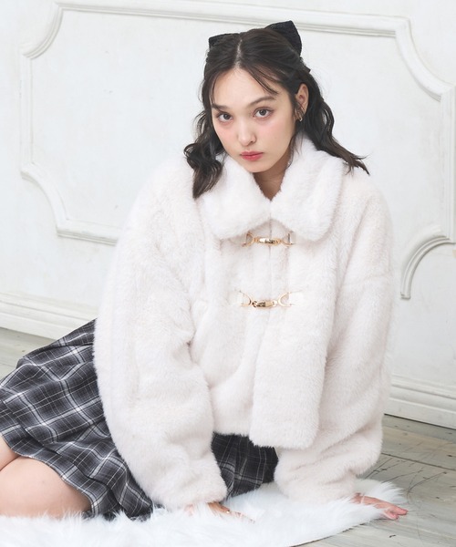 【昨年の大人気商品が今年も帰ってきた♡ビット煌めくふわふわファージャケット】 ▼Design 繊細で柔らかな毛足が肌触りのいいフェイクファージャケット。 ふんわりと柔らかな触り心地もピカイチ。 フロントについたゴールドのビットは高級感があり、高見えも狙えます。 ビット裏の開閉はフック式で着脱も簡単。 すっきした着丈はスタイリングで合わせやすく、 コンパクトなシルエットもスタイルアップできるポイントです。 ▼Styling ボトムを選ばないデザインなので、ミニからロングまで 様々なボトムとのコーデをお楽しみいただけます。 マーメイドスカートとのコーデは王道のフェミニンコーデに。 デニムなどのパンツスタイルとも大人かわいく仕上がります。 ふんわりとしたボリュームスリーブでニットなどを合わせてももたつかず、すっきり着られます。 ・ポケットあり 【以下アイボリー参考。カラーにより多少の誤差あり】 ・透け感:透けない ・伸縮性:なし ・生地の厚さ:厚め ・裏地:あり ▼Recommend ・コート ・ジャケット ・ファー ・ファージャケット ・ビット付き ・高見え ・フェミニン