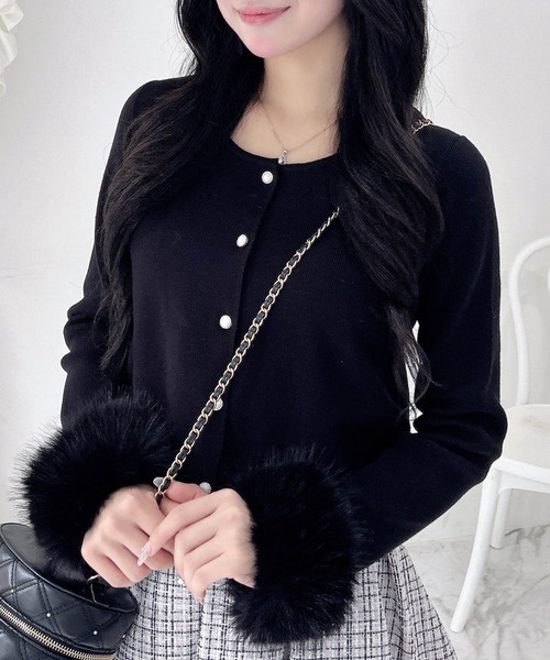★WEB限定アイテム★【袖口のファーが華やかな彩りを添える上品ガーリーなカーディガン】▼Design袖口にあしらったボリューム感たっぷりのエコファーが華やかな印象のカーディガン。レディ&クラシカルなニットカーディガンがオンオフ問わずに大活躍。短めの裾丈とコンパクトなシルエットでどんなボトムスにもバランス良く合わせられます。広めに開いたネックラインが顔周りをすっきり明るく彩ります。袖口のファーはボタンで取り外しが可能です。ゴールドで縁取られたパールボタンが高見えして、上品&フェミニンなムードへ。ケーブル編みのニットでガーリー&キュートな印象も◎▼Stylingミニボトムからロングボトムまで幅広いアイテムと相性良くスタイリングしていただけます。ロングスカートとのコーデはとことんフェミニンに。デニムパンツとのコーデは大人っぽな韓国コーデに◎・袖口ファー取り外し可・ニット製品のため生地に伸縮性があり、サイズに若干の誤差が生じる場合がございます。予めご了承くださいませ。【以下ピンク参考。カラーにより多少の誤差あり】・透け感:やや透ける・伸縮性:あり・生地の厚さ:普通・裏地:なし▼Recommend・カーディガン・ニットカーディガン・ニット・ファー・ケーブル編み・大人かわいい