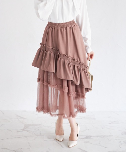 ♡ZOZOTOWN限定アイテム♡ \歩くたび揺れるチュールがドラマティック♡/ 大人フェミニンな雰囲気をまとえる、アシメトリーデザインのスカート♪ふんわり広がるチュールフリルを切り替えであしらい、歩くたびに軽やかに揺れるシルエットが女性らしさを引き立てます。 アシメトリーのラインでスタイルアップ効果も◎ ウエストは程よくすっきり見せながら、ゴム仕様でラクな穿き心地を叶えてくれるのも嬉しいポイント。 華やかさがありつつも落ち着いた印象で、ブラウス合わせでお出かけにも、ニット合わせでデイリーにも幅広く活躍します。 一枚でコーデの主役になるスカートは、季節を問わず大人のワードローブに取り入れたいアイテムです♡ 【Information】 ◆《お気に入り登録》がオススメ◆ ・「商品のお気に入り登録」で再入荷通知や、ラストの通知、セール通知も受け取ることが出来ます。 ・「ブランドのお気に入り登録」で新商品や再入荷など、お得な情報を受け取ることが出来ます。 ※撮影時のライティング、ご覧になっているモニター・PC環境により、実際の商品と色味が異なって見える場合がございます。予めご了承をお願い致します。 ※モデル着用画像は実際の色と多少異なる場合がございますのでトルソー画像をご確認ください。 大人ファッション 大人フェミニン 大人ガーリー 大人エレガント 大人女子 大人コーデ お仕事コーデ おすすめコーデ 今日コーデ オフィスコーデ モテコーデ きれいめコーデ 上品コーデ デートコーデ お呼ばれコーデ 大人かわいい 大人可愛い 大人きれいめ 上品 女性らしい きれいめカジュアル 大人カジュアル ファッション通販 お洒落 トレンド フェミニン エレガンス ガーリー