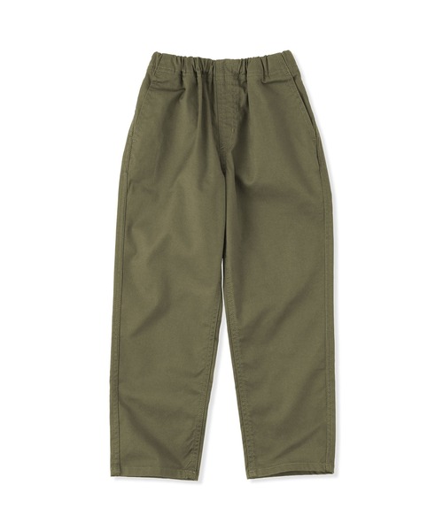 丈夫なチノ素材です。肌当たりが優しい縫製仕様。動きやすいようマチを付けています。綿はオーガニックコットンです。 2025年シーズンから”肌ごこち”がさらに良くなりました。 【素材】 綿にポリウレタンを加えることで、ほどよいストレッチ性をもたせています。ストレッチにすることで、しゃがんだ時のひざのハリを改善しました。 【デザイン】 程よいワイドシルエットで、デザイン性だけでなく動きやすさもあるパンツです。マチ付きにすることで脚の可動域を広げ、活発に動けるパンツに仕立てました。 ウエストは総ゴムで調整口があり、ゴムを引き出して縫い止めることで、体形や成長に合わせて調整可能です。 ゴムは固定していないため、取り替えもできます。おさがりにも配慮した、永く着ていただくための工夫です。 【仕様】 透け感:なし 伸縮性:ややあり フィット感:ゆったりめ 股上の深さ:普通 ウエストの仕様:総ゴム(調整口あり) お取扱い上のご注意 : ●濃色製品は使用中の摩擦や濡れた状態での接触により色移りする事があります。洗濯の際は他のものと分けて洗ってください。 お取扱い上のご注意2 : ●素材の特性上、着用や洗濯・クリーニング時の摩擦により毛羽立ち、毛玉が発生します。その際はお早めに毛玉取り器などで手入れをしてください。 お洗濯上のご注意 : ●プリント部分はアイロンでこすらないでください。 お洗濯上のご注意2 : ●淡色製品には蛍光増白剤入り洗剤を使用しないでください。