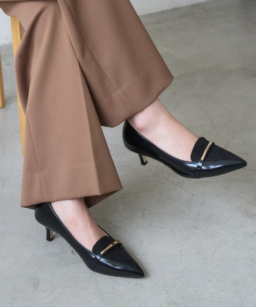 幅広いスタイリングにフィットするローファーパンプス。モカ部分に効いた金具パーツのおかげで、上品な印象で履いていただけます。ツヤ感のある素材とウール素材やチェック柄との配色使いで、秋冬らしい足元へ昇華してくれます。ヒールは普段使いしやすい5cmの高さで、甲が深いのでパンプスながらも安定感のある履き心地です。**********************【スタッフ着用コメント】《スタッフS》普段サイズ:23.5/着用サイズ:23.5サイズ感:素足で履いてちょうどよい履き心地:普段のサイズを素足で履いてぴったり。タイツやストッキングはこのままのサイズで履けそうです。甲が深いので踵が浮く感じもなく安定感のある履き心地でした。***********************サイズによりヒールの高さが多少前後することが御座います。予めご了承ください。*柄を使用しているカラーについて、柄の出かたには個体差がございますのでご了承ください。*照明の関係により、実際よりも色味が違って見える場合があります。またパソコン・スマートフォンなどの環境により、若干製品と画像のカラーが異なる場合もございます。*商品の色味は、商品アップ画像をご参照ください。