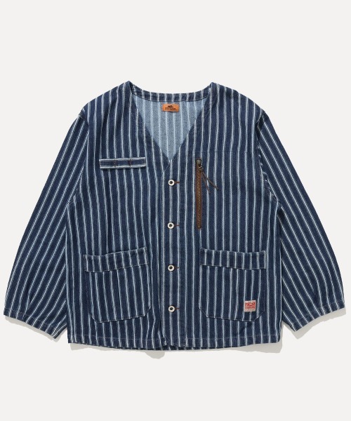 《KRIFF MAYER 秋冬アイテム「ノーカラーデニムジャケット」》 フードやタートルのアイテムと合わせやすいノーカラーの綿100%デニムジャケットです。 ボタンホールの配色、オリジナルのドーナツボタンがアクセントに。 ゆとりのあるサイズ感なので、スウェットやパーカーを中に入れても窮屈感なく 合わせるものによって秋・冬・春とロングシーズン活躍します。 程よく落ち感のある肩幅でオーバーサイズになりすぎないシルエットに仕上げ 幅広い年齢層が着用できるよう拘りました。 ※インディゴ染めの染料は色落ちしやすい性質を持ちます。 着用・洗濯を繰り返すことにより、少しずつ変化する表情や風合いを楽しむことができます。 その為摩擦や濡れたままでの放置により移染する場合がございます。 取り扱いの際は付属のコーションタグをよくご確認くださいませ。 ------------------------- シルエット:ややワイド 生地の厚さ:中肉 透け感:なし 伸縮性:ややあり 裏地:なし ケア方法:洗濯機洗い可(ネット使用) ------------------------- ●KRIFF MAYER(クリフメイヤー) 家族みんなの毎日に楽しさと笑顔をお届けしたい。 クリフメイヤーの服にはそんな思いがたくさん詰め込まれています。 メンズ・レディース・キッズ、更にドッグウェアまで展開。 何気ない日々が特別な思い出に変わる瞬間を演出する、ベーシックかつオリジナリティーあふれる新しいデイリーウエアを提案します。