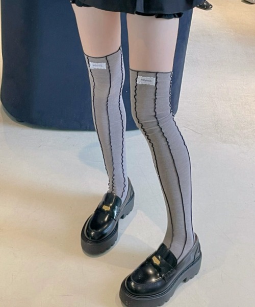 足元に華やかさをプラスするフリルデザインのニーハイソックス。センターに縦に走るステッチラインが脚のラインをきれいに見せつつ、ストリートライクなアクセントに。履き口には控えめなロゴパッチを施し、ガーリーな中に抜け感のあるエッジを効かせたバランスに仕上がっています。しっかりと長さのある丈感で、ミニスカートやショートパンツと合わせれば、Y2Kムードのある旬なスタイリングが完成。厚底ローファーやメリージェーンシューズとの組み合わせにも最適で、甘辛ミックスの足元に映える万能アイテムです。普段のコーデに差をつけたい方にもおすすめの、主役級ニーハイソックスです。詳細補足サイズ:22cm-24cm【SANSëLF】▼お気に入り登録をおすすめします▼♡をクリック!お得なセール情報や、人気完売商品の再入荷情報ラスト1点の通知など、耳寄りなお買い得情報をいち早く受ける事ができます。ブランド【SANSëLF】のお気に入り登録もご一緒にお願い致します。取扱注意事項※サイズは、測定方法と測定者によって多少の誤差がありますのでご了承下さいませ。また体型によって、サイズ感に個人差がございます。(平置き採寸)※商品によってはシワがつきやすく、畳みジワや折りジワなどが強く出る場合がございます。その際は加湿した風呂場に数時間干すか、スチームアイロンでのお手入れをお勧めしております。※生地の素材上、においが気になる場合がございます。その際は陰干しして頂くと、ほとんど感じにくくなります。※レース等の繊細な素材を使用している場合には、お取り扱いにご注意下さい。※デニムを使用した製品は、インディゴ染めをしています。汗や摩擦により移染しやすいので、白色、淡色の組み合わせや重ね着はお避け下さい。※ニット素材を使用した製品は、重みで伸びやすくなりますのでハンガーでの保管はお控えください。※お洗濯の際には、品質表示の指示に従ってください。必要であれば専門店にご相談ください。家庭でご洗濯できる商品に関しては、洗濯専用ネットをご使用の上、個別での洗濯をお勧めいたします。お色物は、色移りする可能性がございます。※着用画像は撮影状況や光によって、多少異なる場合がございますので、置き画像をご確認下さい。※2023年7月1日より、環境に配慮した取り組みの一環として、紙のアテンションタグを廃止しております。※他のキャンペーンにより、期間中に価格が変動する場合があります。※セールは予告なく終了させていただく場合もあります。